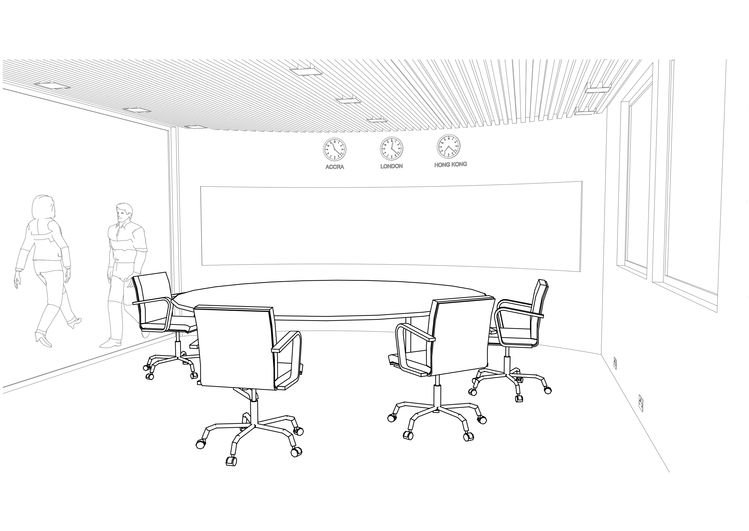 Meeting room walls could be designed with intelligent glazed screens addressing key office or corridor spaces – as per current GS PTC layouts. These serve a multitude of purposes: