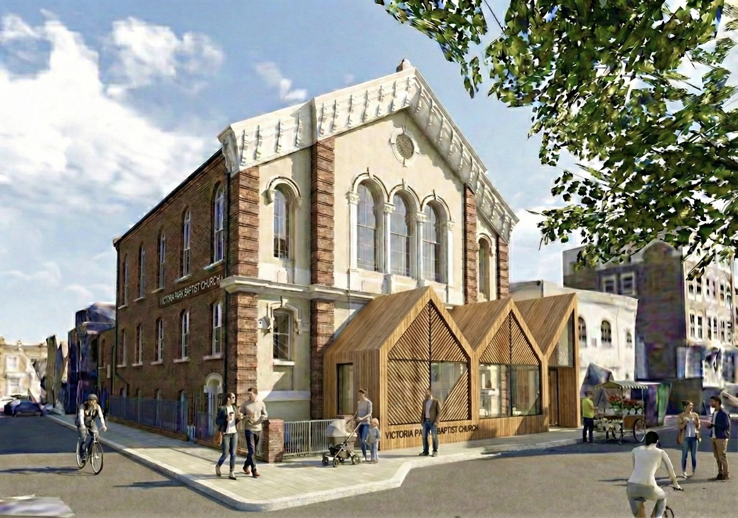 The proposed single-storey timber entrance is conceived not as an appendage, but as a civic threshold: a contemporary narthex that mediates between street and sanctuary, weekday and Sunday, heritage and renewal. The new foyer is articulated as a finely crafted timber pavilion set forward of the historic church façade. Its geometry is calm yet expressive: a sequence of pitched forms that echo the rhythm and hierarchy of the host building’s roofscape, abstracted and reinterpreted at a domestic, human scale. The structure reads as light, porous and deliberately legible, with expressed timber framing and generous areas of glazing that dissolve the boundary between inside and out.